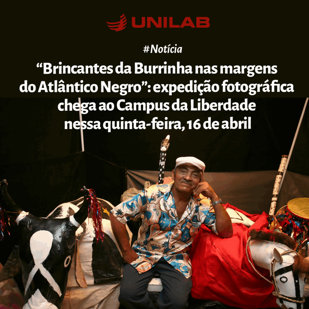 Com imagens da artista visual Roberta Guimarães e idealizada pela historiadora Joana D´Arc Lima (UFPE) e pelo sociólogo Maurício Antunes Tavares (Fundaj), a exposição fotográfica itinerante “Brincantes da Burrinha nas margens do Atlântico Negro: África-Brasil em movimento diaspórico” aporta finalmente no Ceará, mais exatamente no pátio do Campus da Liberdade da Universidade da Integração Internacional da Lusofonia Afro-Brasileira – Unilab, por meio da Coordenação de Arte e Cultura da Proex. A abertura oficial da mostra acontece na próxima quinta-feira, 16 de abril, a partir das 17h, contando com a presença dos curadores, que mediarão uma visita guiada à obras.